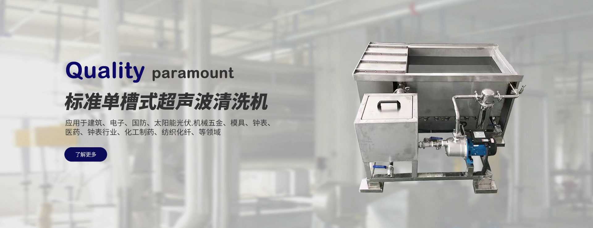 超聲波清洗機采用國內外先進技術,進口品牌電子元器件和原材料,生產幾十個系列近 百種規格的標準系列單槽超聲波清洗機、多槽超聲波清洗機、微型超聲波清洗機、真空氣相 清洗機等,并可按照顧客要求設計定做各種非標準的清洗設備。